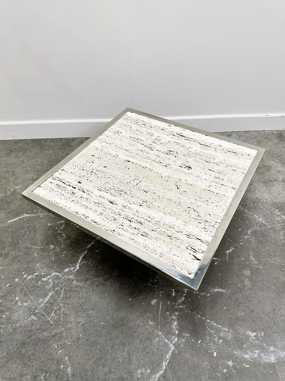 Brute Travertin Coffee Table with Brass Base and Chrome Edges, France 1970s.